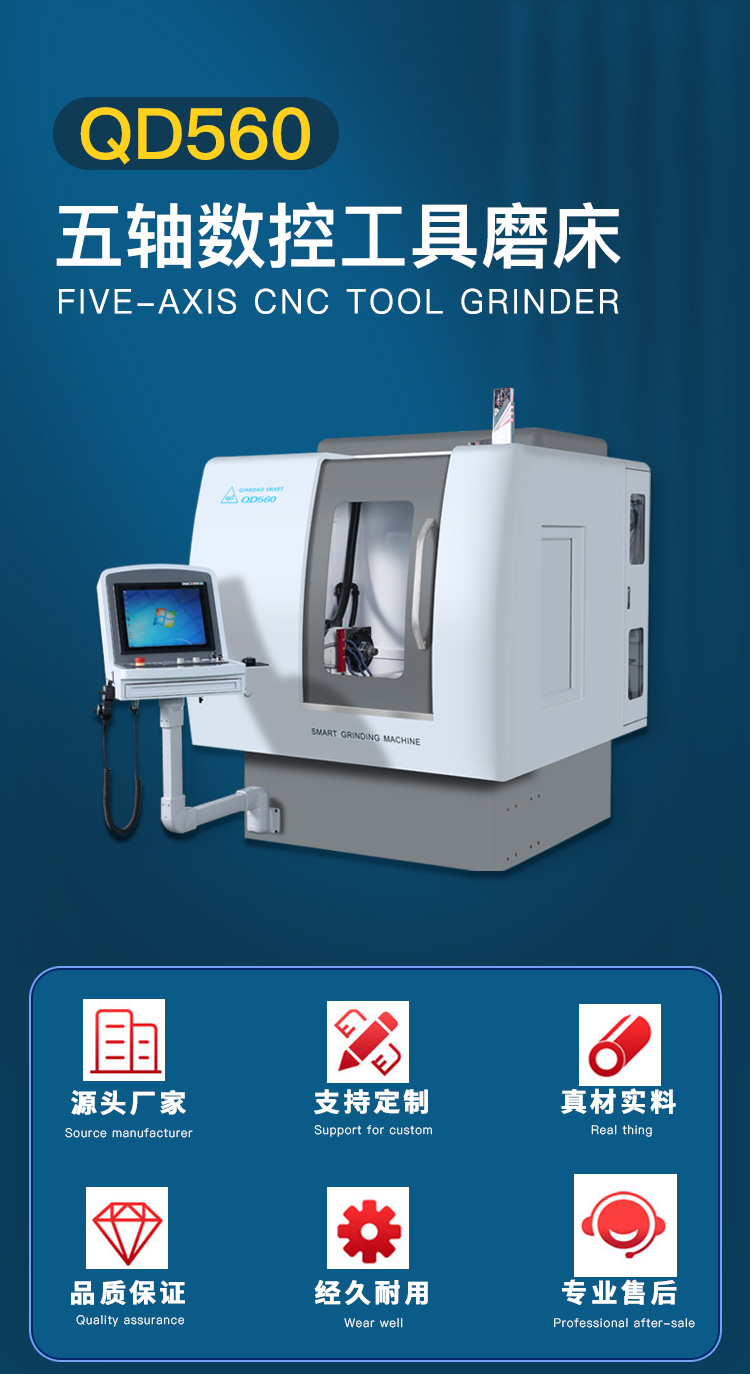 QD560是千島公司新研發(fā)的五軸五聯(lián)動數(shù)控工具磨床,是一款高性價比刀具磨床,適用于生產或修磨各類銑削類刀具、鉆削類刀具、成形刀具等 。